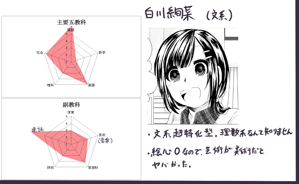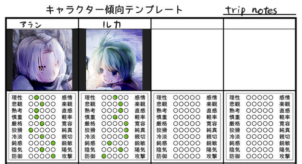 今回はTwitter落書きの中から、うちの子の性格とか関係図とかを記したものをアップしようと思います。