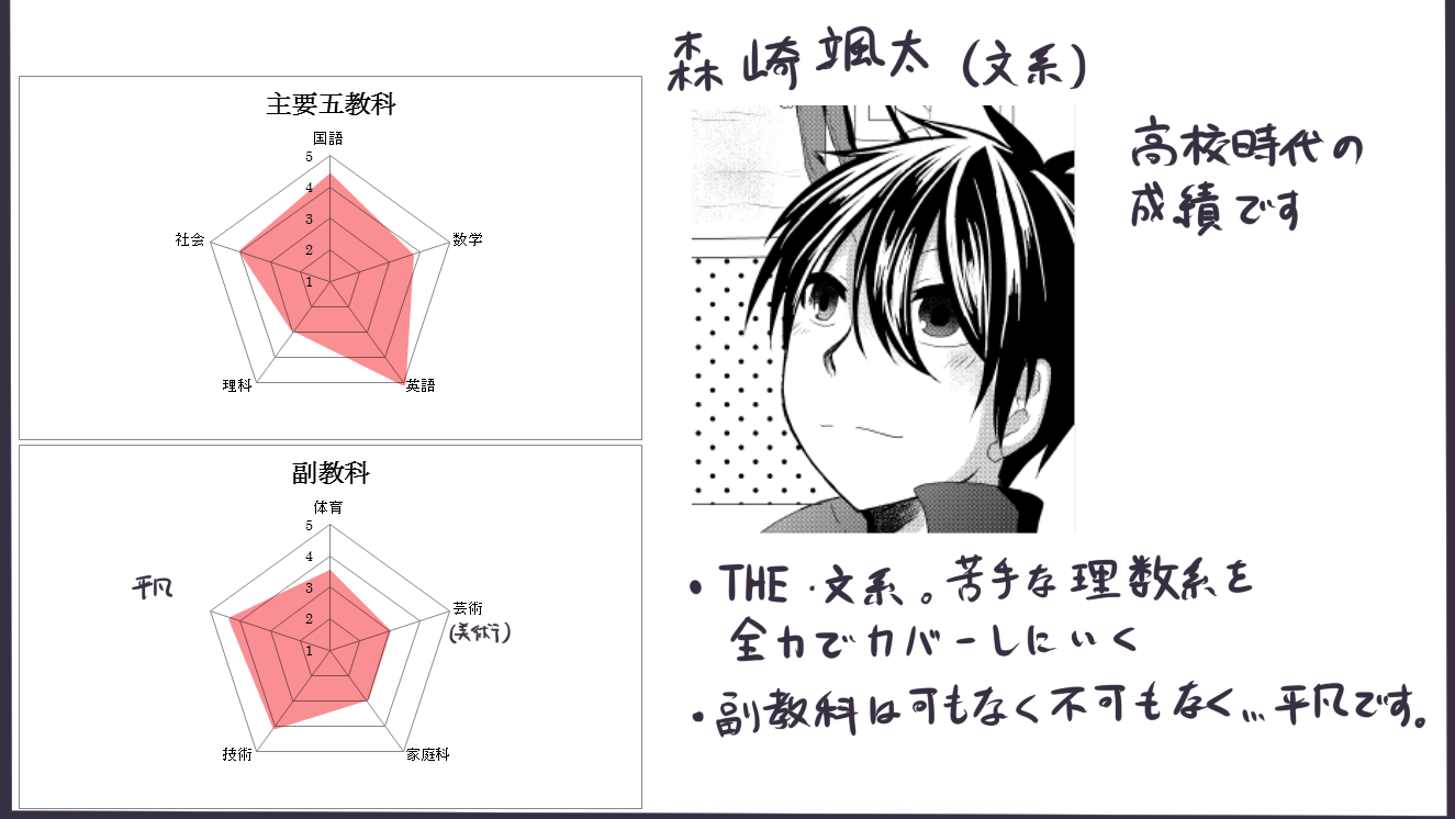 英語については、英語の本にも手を出した結果高まったという裏設定です笑